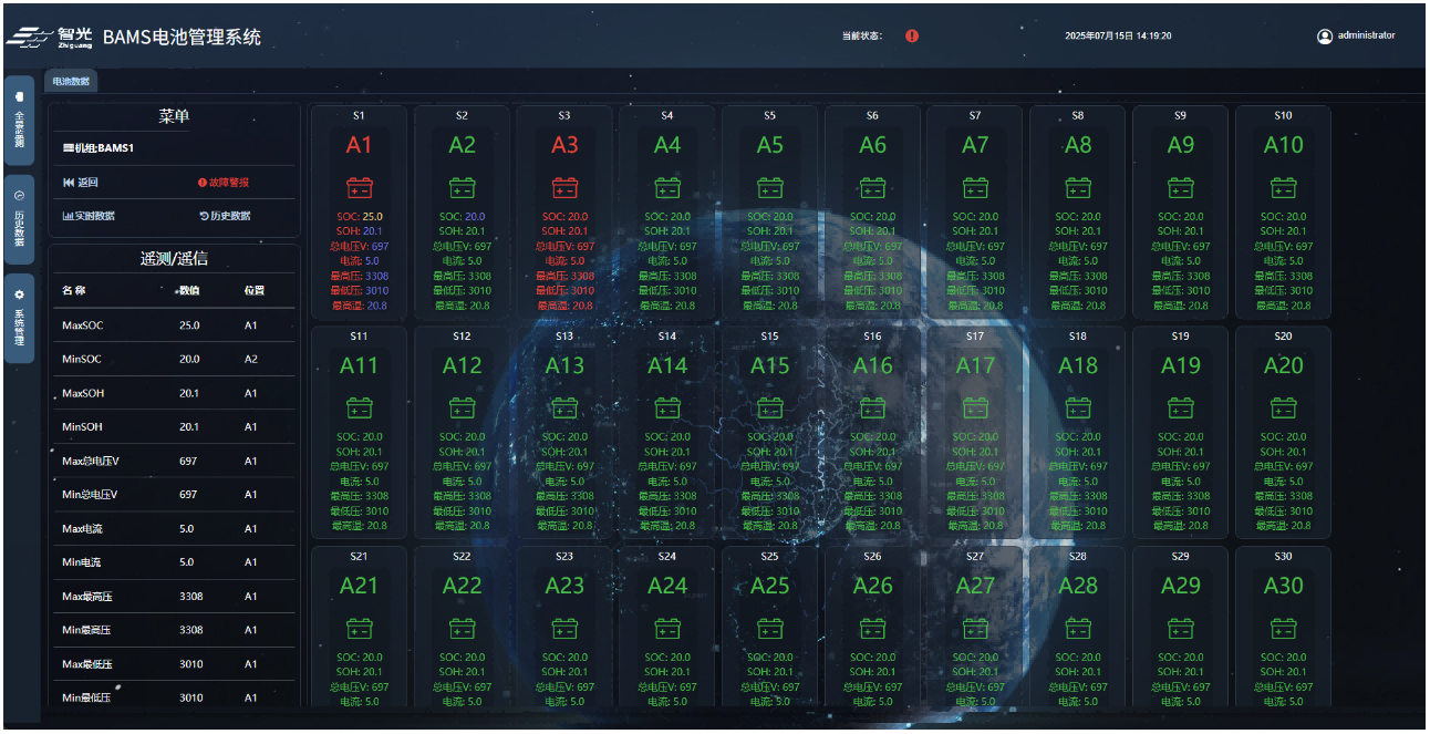 全时全域智能监控预警:实时监测电池温差、压差、一致性及寿命等关键参数,实现电池电流真实可控,防患于未然,保障电站全生命周期安全。