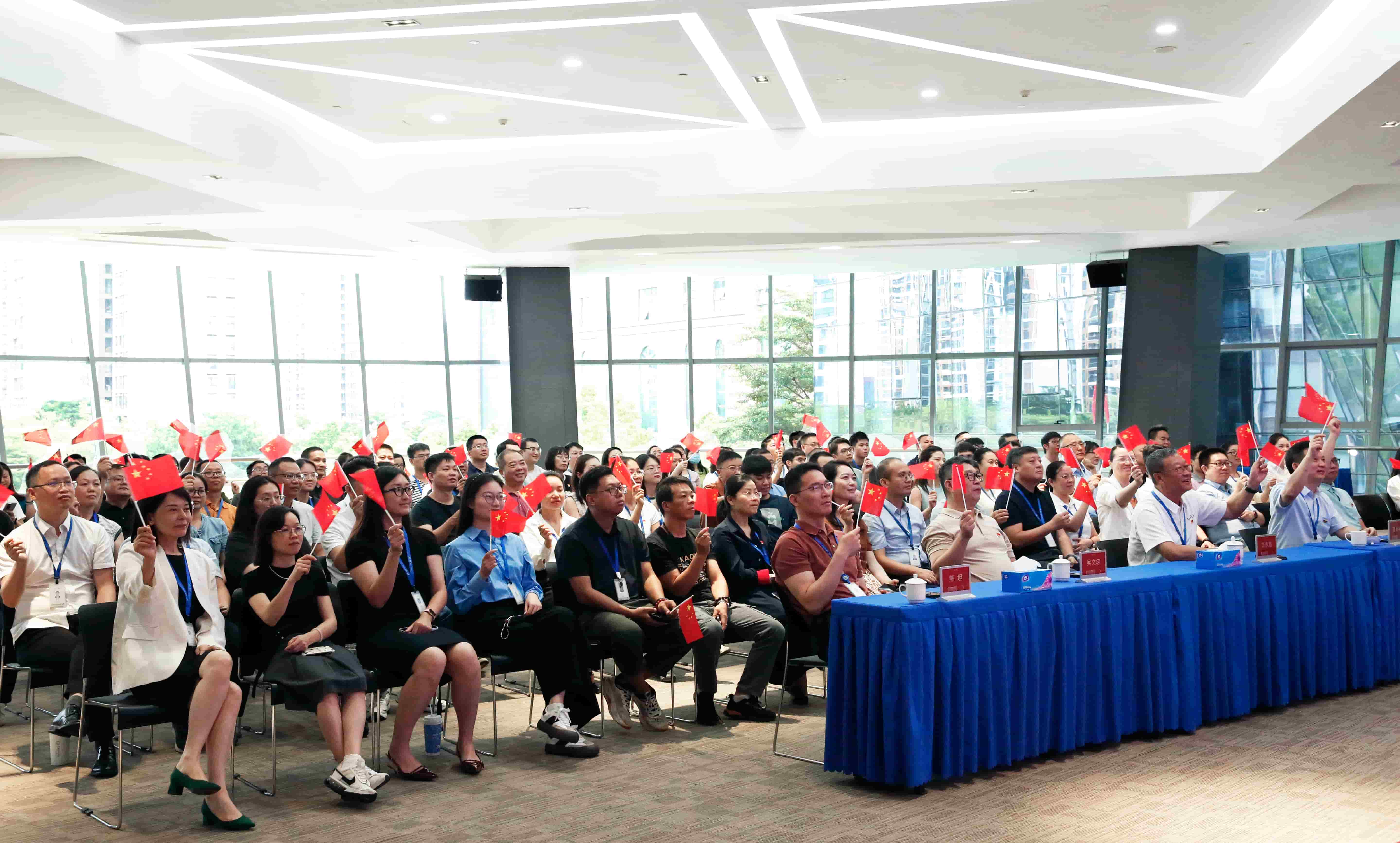 公司多功能会议室气氛庄重而热烈,背景屏幕上“铭记历史、缅怀先烈、珍爱和平、开创未来”的标语格外醒目。上午9时整,庄严的国歌声响起,全体员工自发肃立,澎湃的爱国激情在每个人心中涌动。
