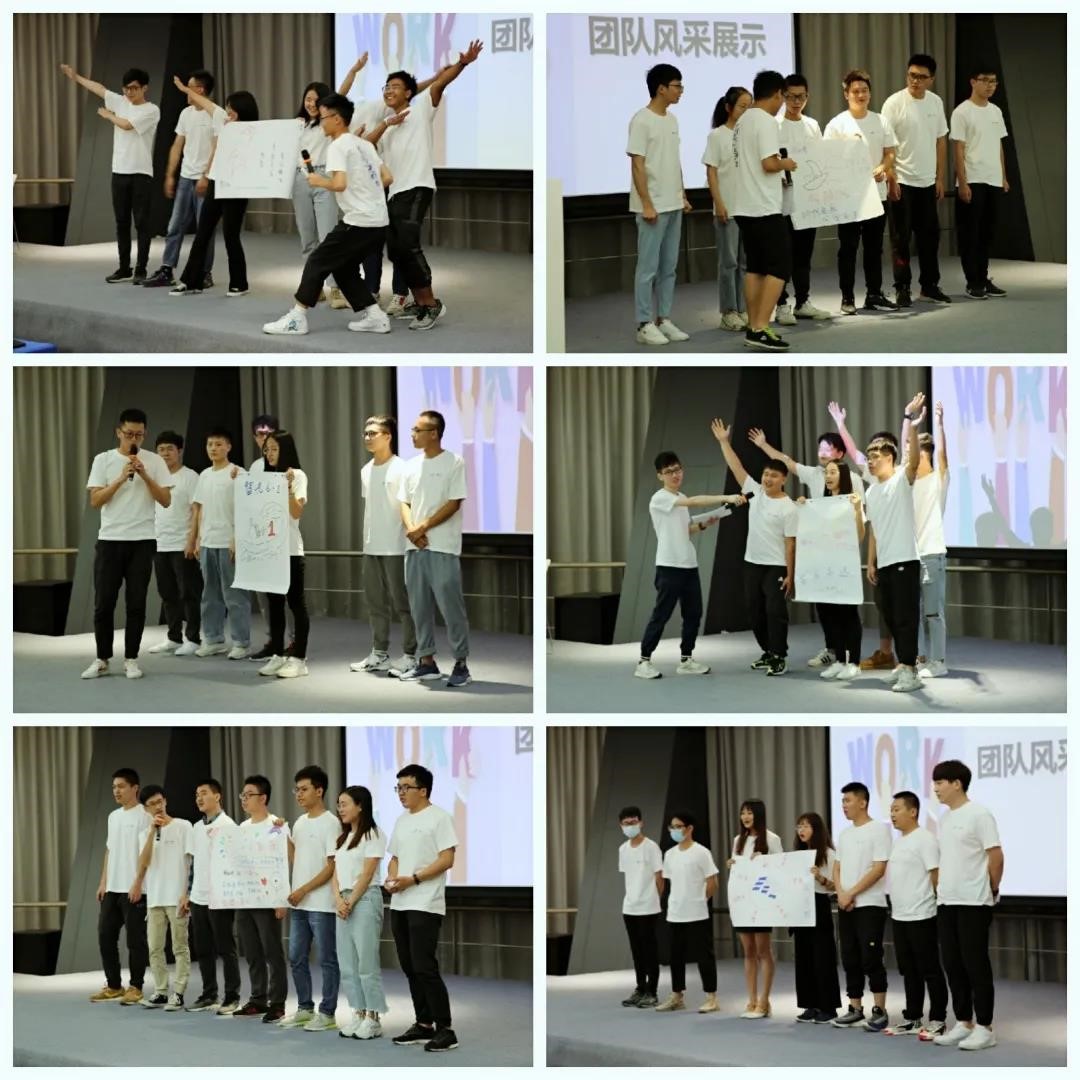 团队展示——在培训开始前,采用“小组PK” 的方式划分小组,通过小组进行团队风采展示,使各位学员打破隔阂并融入整个团队。经过了各个小组的通力合作,产生了各自的小组长、组名、口号、以及logo,展现了新员工积极向上的团队风采。