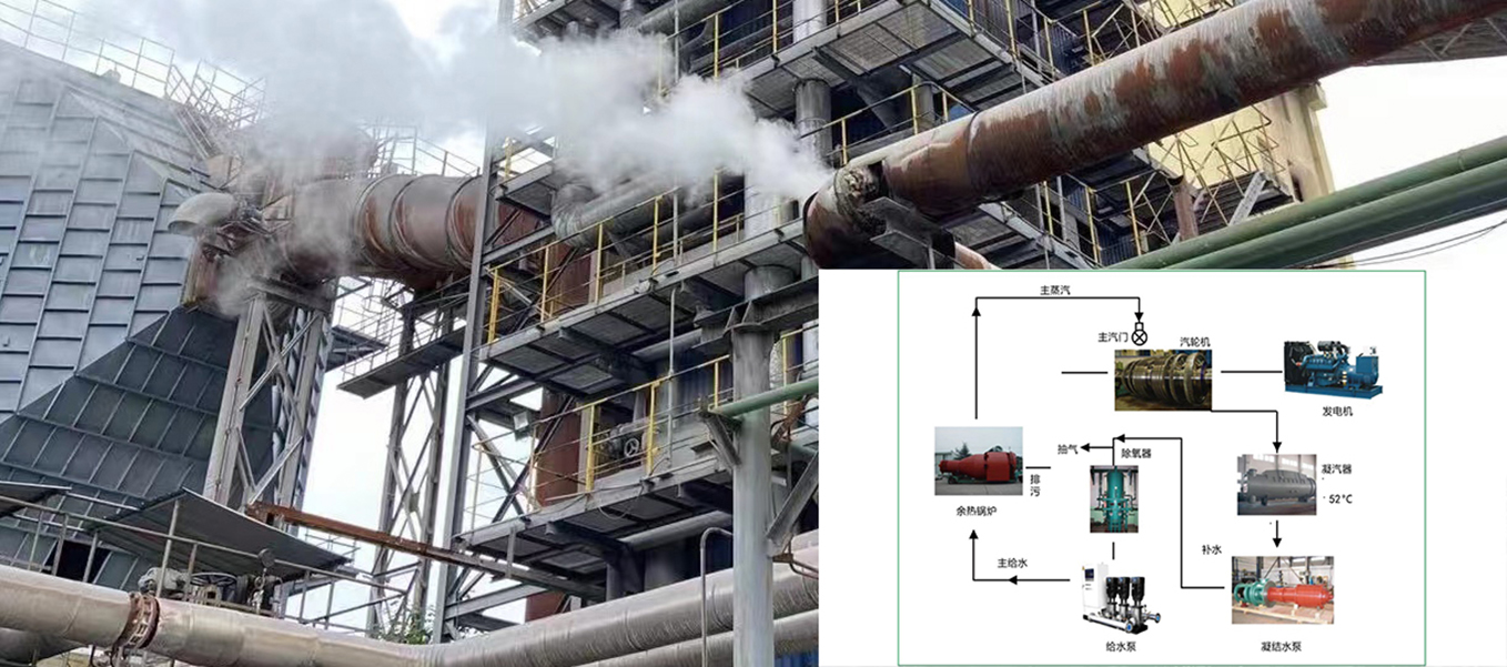 项目概况:利用新余钢铁股份有限公司石灰厂2条b4×60m回转窑生产线余热资源和钢厂富余饱和蒸汽(1.1MPa,20~35t/h),采用改进的石灰窑废气余热发电技术,建设1套装机容量为7.5MW的纯低温余热电站,充分利用石灰回转窑生产线排放的废热资源,降低生产成本,提高企业经济效益。