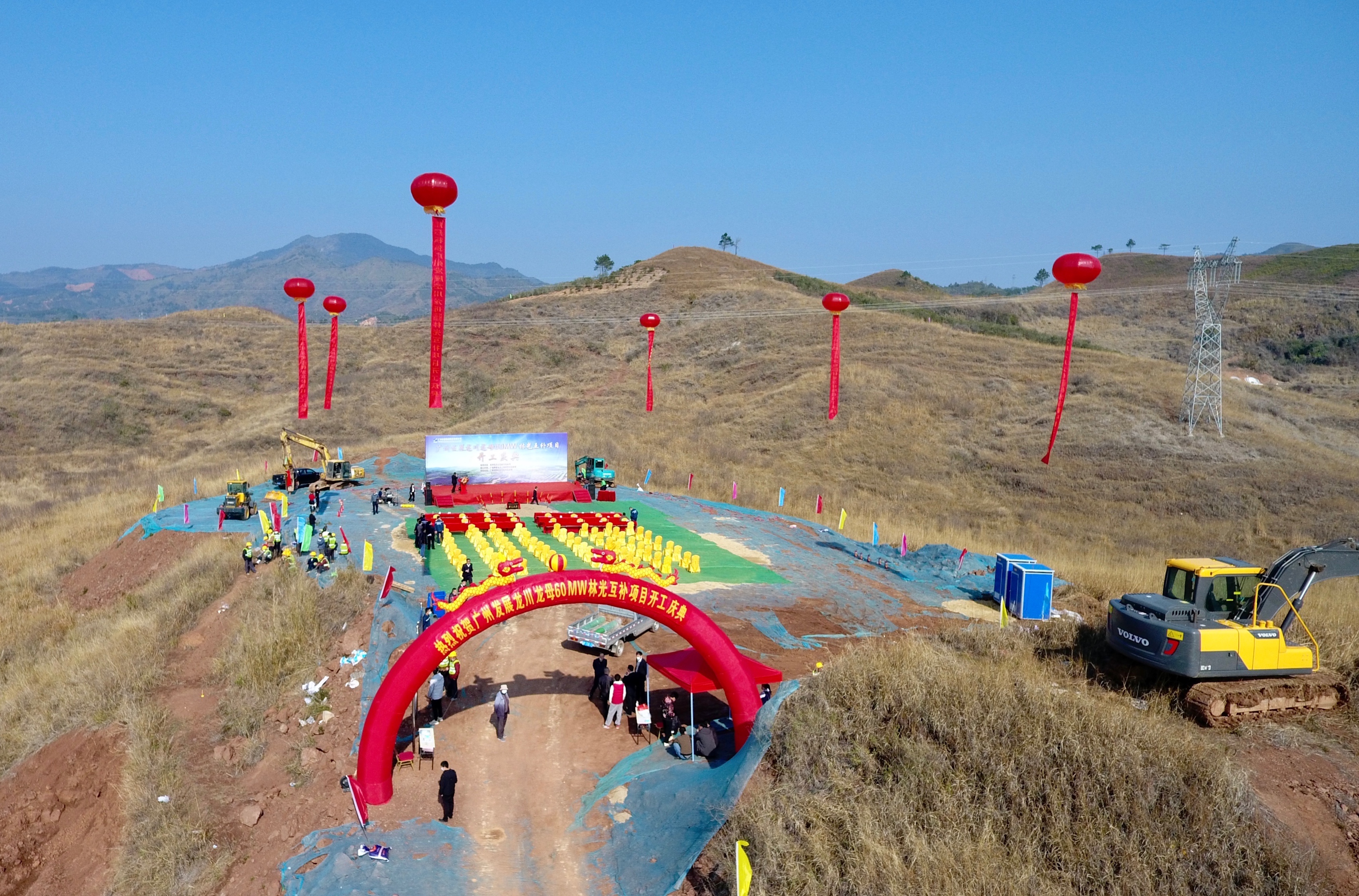 2月25日上午,广州发展龙川龙母60MW林光互补发电项目开工仪式在龙川县龙母镇举行。河源市龙川县委县政府、广州发展新能源股份有限公司(以下简称“广州发展新能源公司”)、广东天安项目管理公司及beat365首页电气下属广州华跃电力工程设计有限公司(以下简称“华跃电力”)领导出席了项目开工仪式,并为项目奠基培土。
